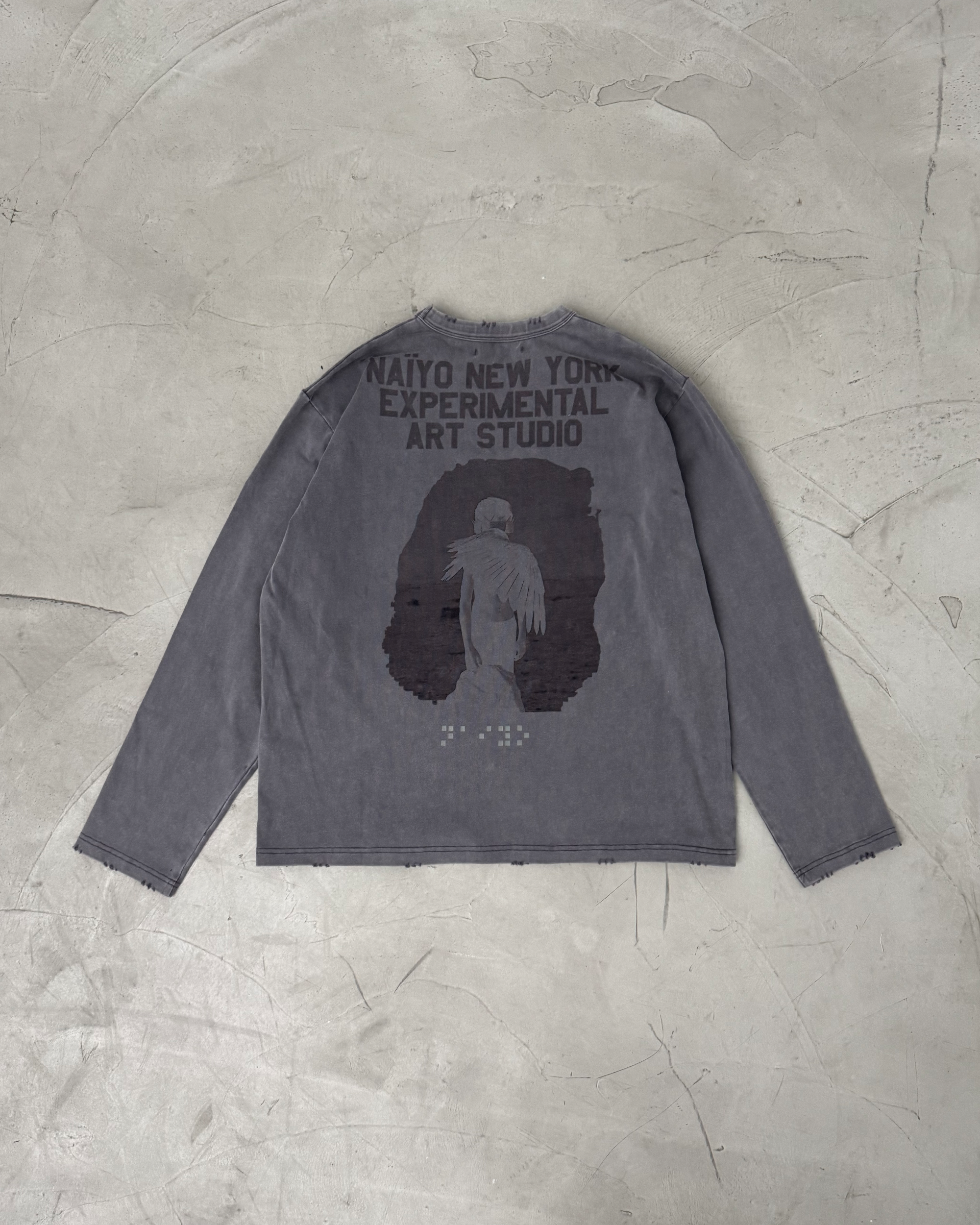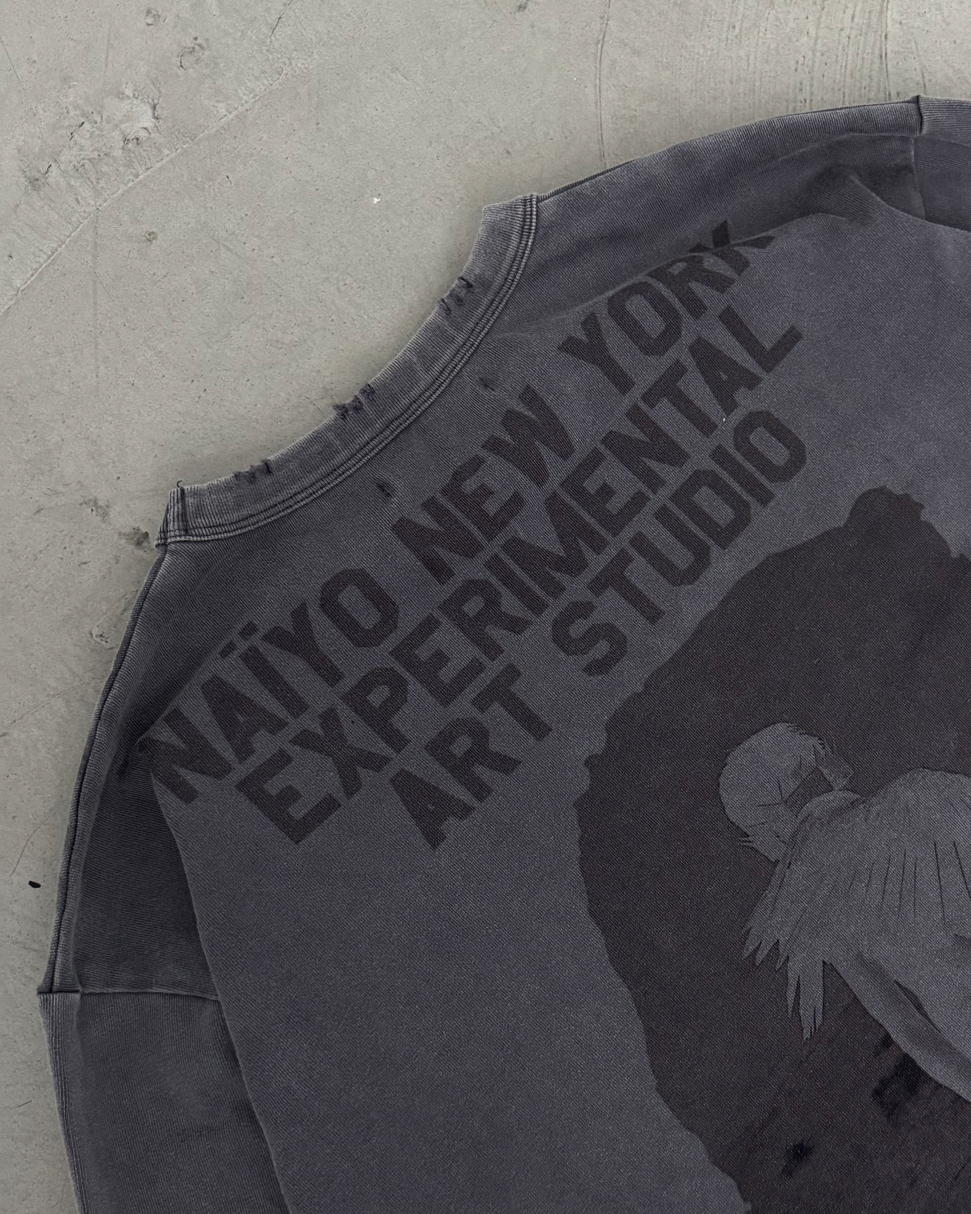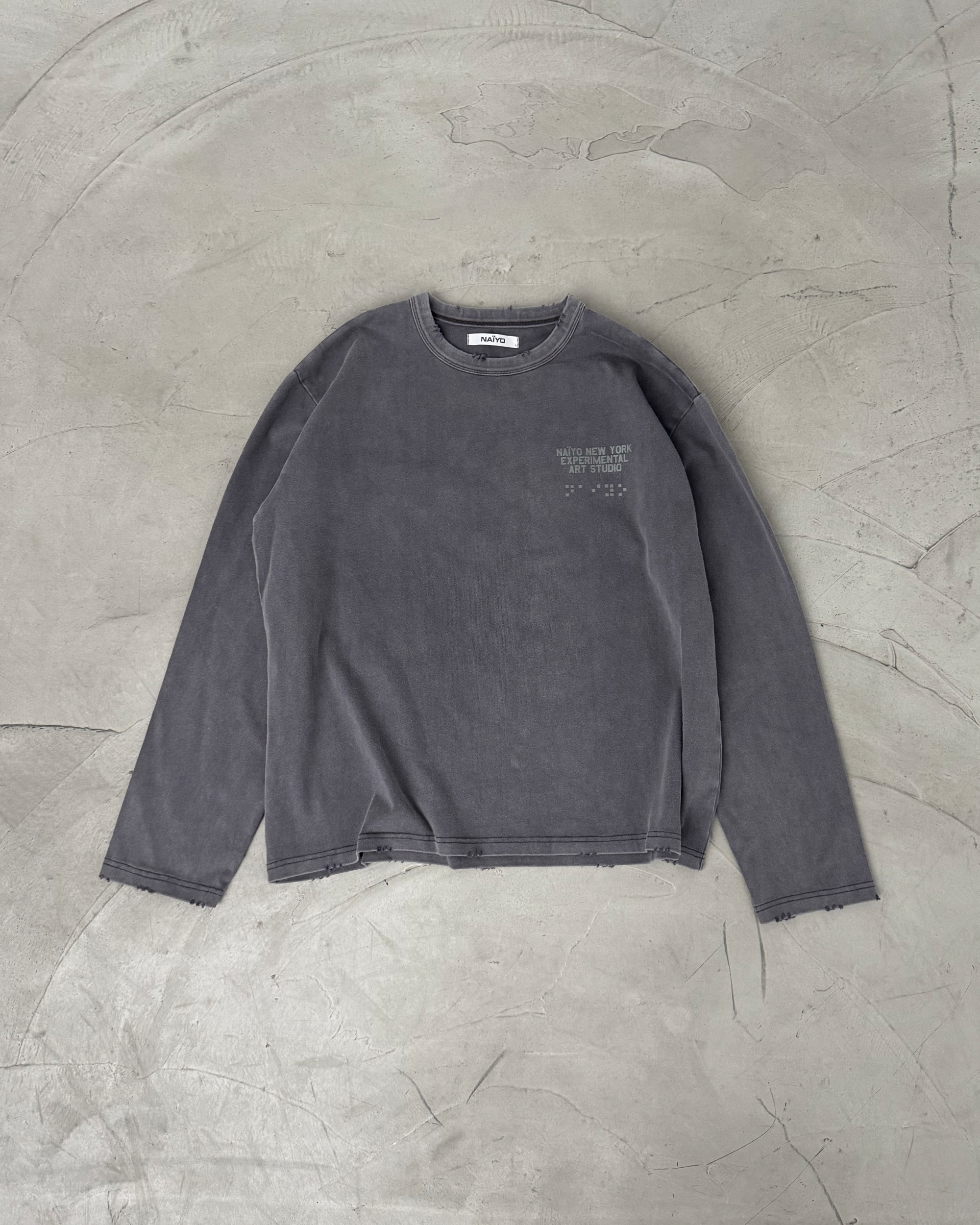 This item has been individually crafted and washed, resulting in a unique finish. Due to the garment dyeing process and washing, color, texture, and prints may fade, peel, or alter with repeated wear and cleaning. Holes are part of the design. To maintain its quality, wash separately or with similar colors. Handle with care.