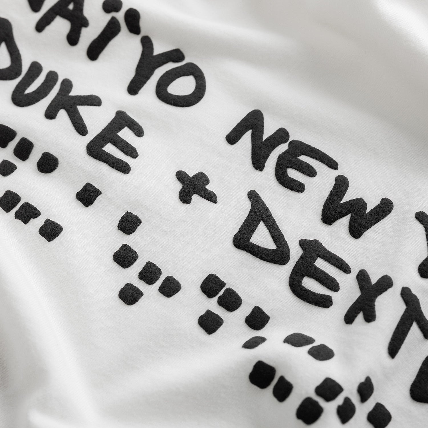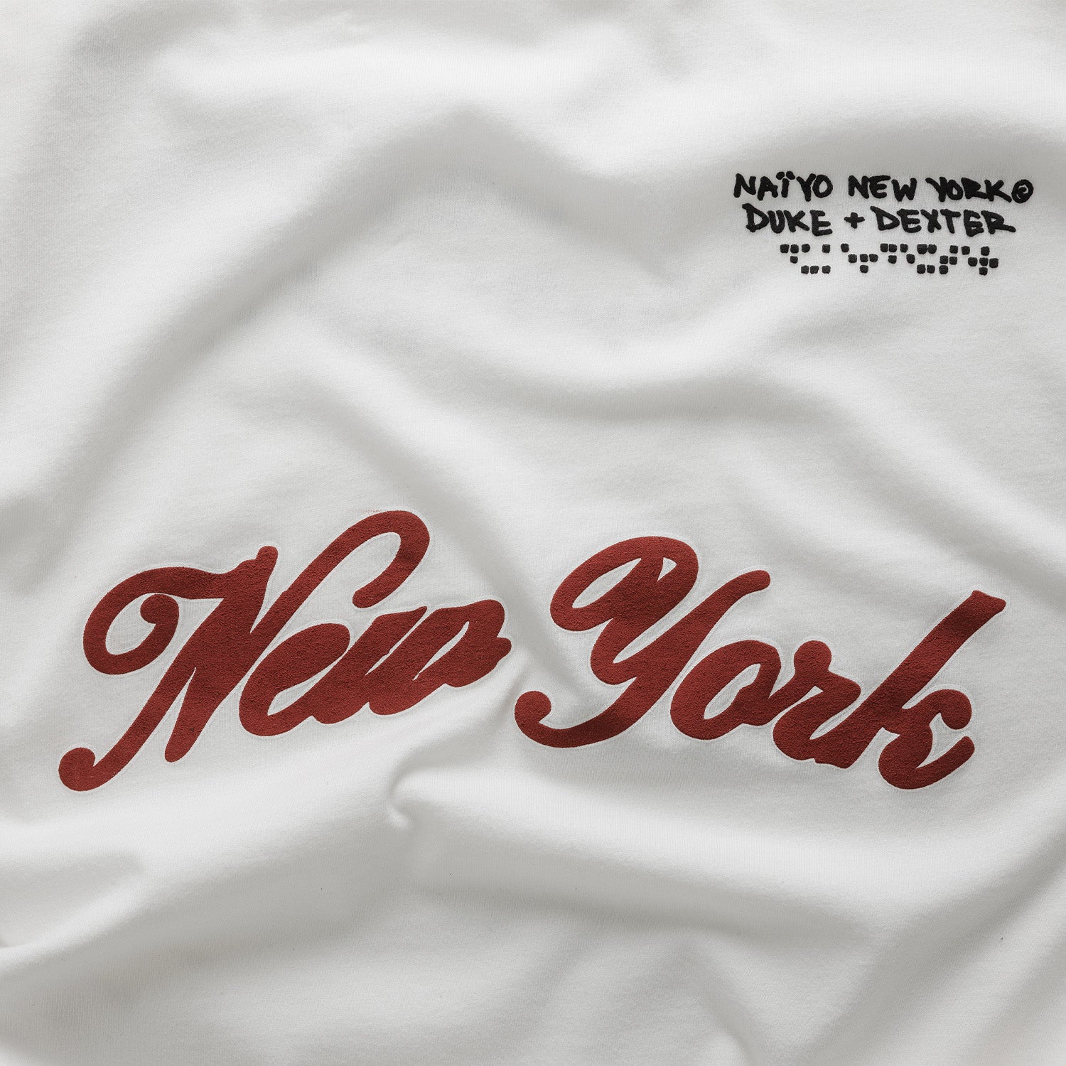 The NY White T-Shirt combines our love of vintage with the design language of our collaborator, DUKE + DEXTER. It’s cut for a boxy fit from worn-in cotton-jersey and detailed with puff-print artwork at the front and back, including a script ‘New York’ across the chest.