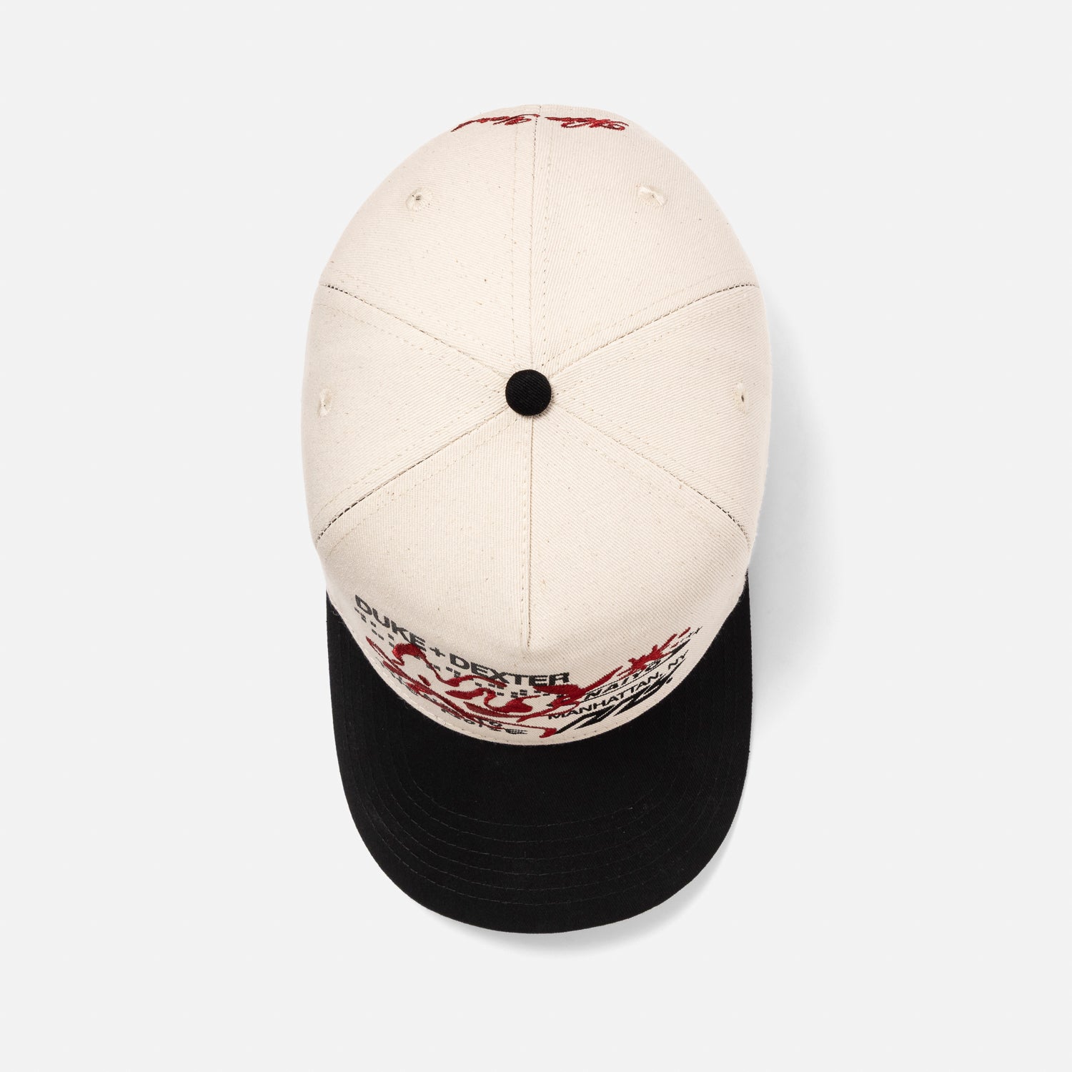 Part of our collaboration with DUKE + DEXTER, the NY Cap is embroidered with an ‘Organic NNY’ from designer and Naïyo co-founder, Adi Nachum. It’s made from contrasts of black and cream cotton-twill and printed with collaborative artwork across the crown, including NAÏYO’s braille motif. Details include a padded sweatband, embroidered eyelets and an adjustable, snapback strap. Limited edition – one drop only.